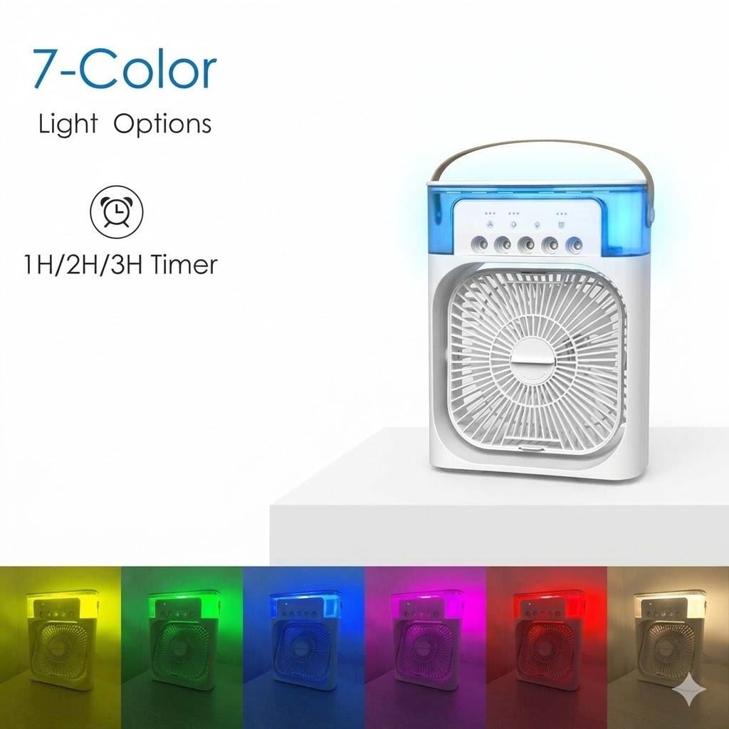The Portable Air Cooler Fan is a compact and efficient personal air conditioner designed for home and office use. Features a built-in water tank for cool mist circulation multiple fan speed settings touch controls and detachable fan blades for easy cleaning. Regular cleaning prevents bacteria growth keeping your environment fresh and healthy.